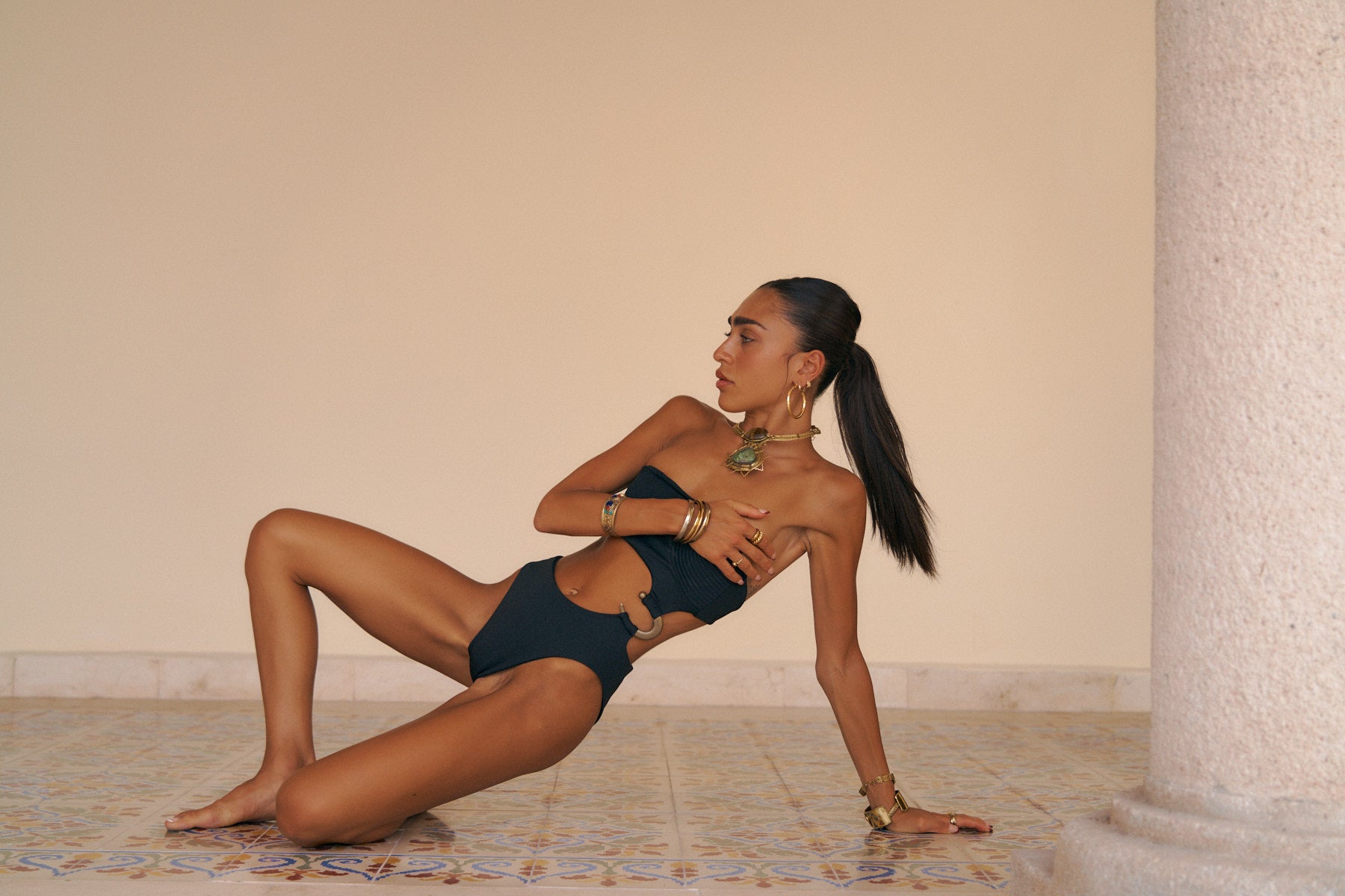 The é hook one piece was designed for the woman who wants to be the moment. This one piece is striking, unique and exudes confidence.